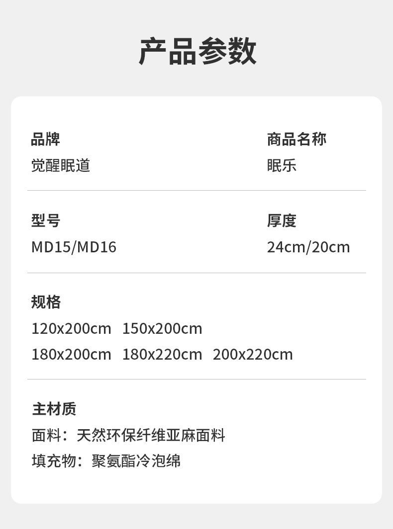 MD15眠樂 厚度:24cm 睡感:適中75% 指導價:5198.00元