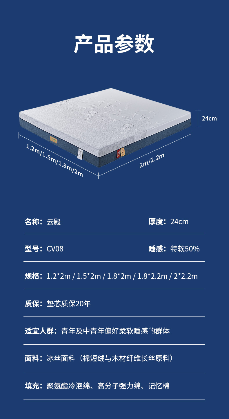 CV08云殿 厚度24cm 睡感:特軟50% 指導價:7530.00